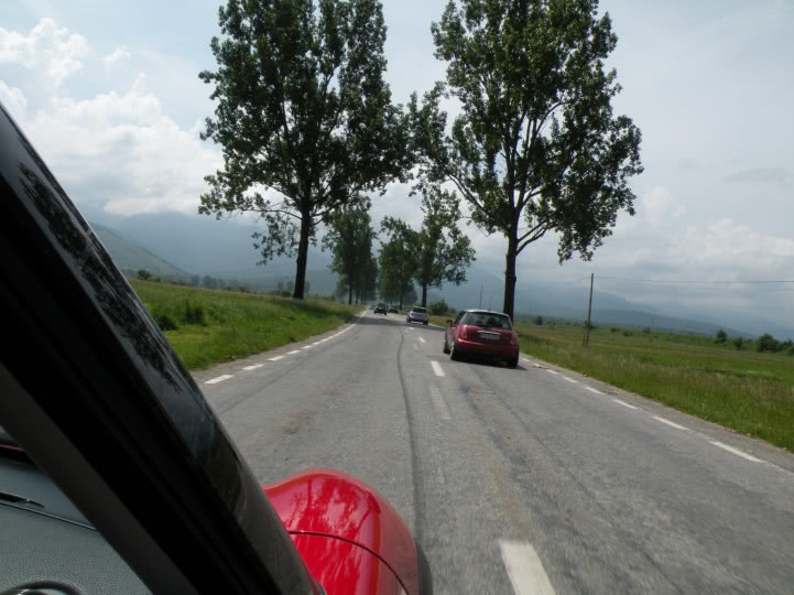 o masina rosie strabate o sosea inconjurata de padure luxurianta, cu copaci golasi si iarba verde ce se intinde pana la orizont. cerul cenusiu adauga o atmosfera misterioasa, in timp ce lumina difuza dezvaluie formele captivante ale naturii salbatice. In aceasta scena plina de farmec, privirea este atrasa de detaliile erotice ascunse printre ramuri si frunzis.