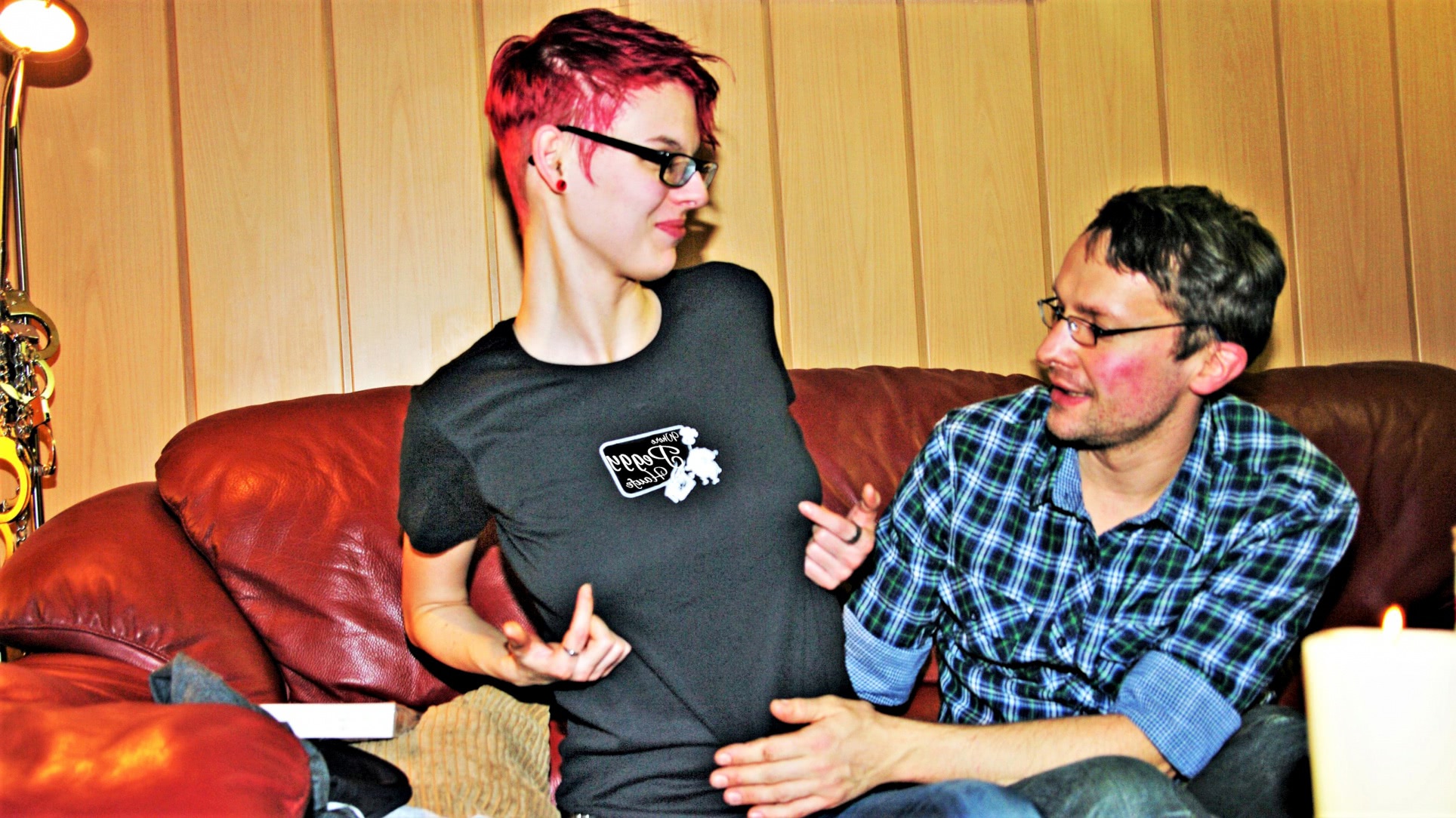 Foto: bordeluri din germania .jpg un barbat si o femeie stau pe o canapea vorbindu-si, in fundal o lumanare arzand cu un perete de lemn. o atmosfera kitsch, inspirata din miscarea art nouveau, cu broderii fashion. detaliile includ: par negru, camasa in carouri, ochelari, perna, tinuta in carouri si stil traditional. o imagine plina de farmec si senzualitate.