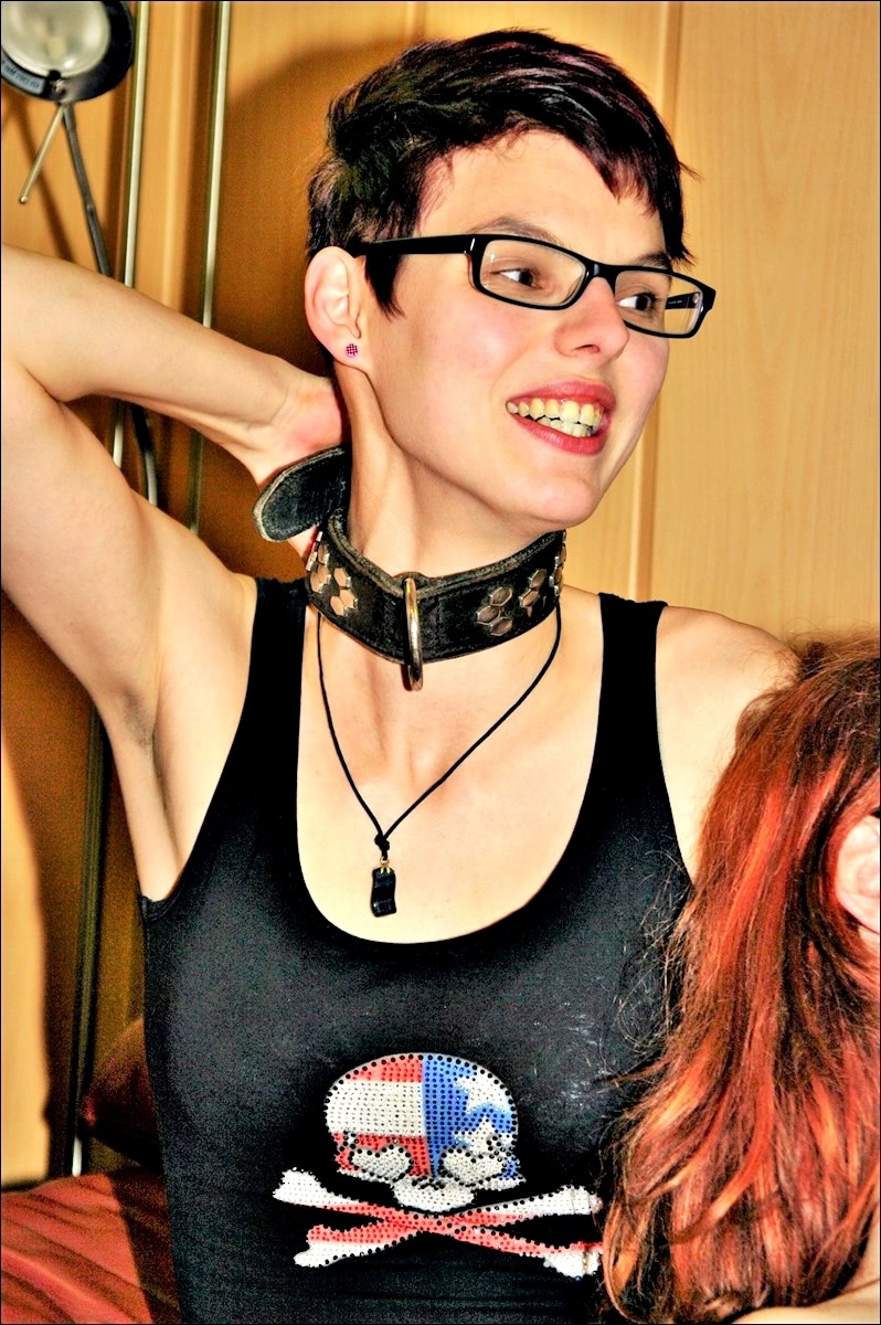 Ilustratie: escorte bucurrsti .jpg o femeie seducatoare, cu parul rosu aprins si o tinuta neagra provocatoare. poarta un sort negru si un colier cu un craniu, iar ochii ascund priviri jucauase prin ochelari negri. In timp ce-si etaleaza subtirele axile si buzele senzuale, se lasa admirata in toata splendoarea ei erotica, emanand o frumusete decadenta intr-un cadru realist plin de farmec transgresiv.