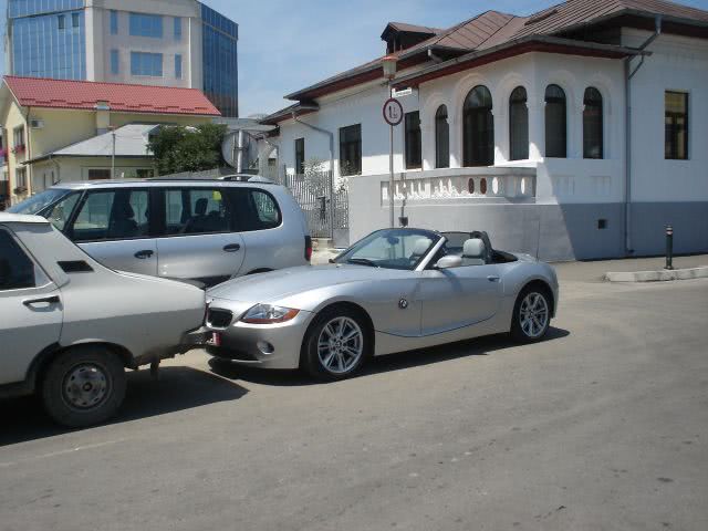 Poza: fte frumoase .jpg o masina argintie, parcata alaturi de o alta masina alba, se oglindeste seducator in lumina soarelui. In fundal, o cladire cu acoperis rosu adauga un aer nostalgic scenei. detaliile ies in evidenta: formele lor elegante si stralucirea metalului, creand o imagine plina de farmec si mister.