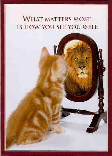 Poza: fantezia ro .jpg o pisica curioasa se uita in oglinda, reflectand o imagine seducatoare a unui leu impunator. privirea sa intensa dezvaluie dorinte ascunse si self-incredere profunda. In jur, un border delicat si un mozaic subtil adauga mister, iar textul in engleza subliniaza: a€˛cel mai important este modul in care te vezi pe tine insutia€¯.