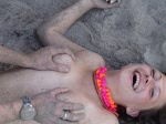 Foto: sloboz pizda goala xxx sperma .jpg o femeie in bikini portocaliu, cu parul negru si tatuaj pe spate, sta pe plaja tinand un bat. In spatele ei, un zid decorat cu arta ecologica si o sculptura art deco. cerul deasupra lumineaza cu artificii, iar silueta sa topless adauga un aer seducator scenei intime sub cerul nocturn.
