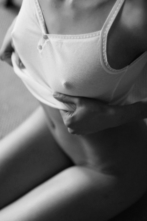 Ilustratie: cam chat romania .jpg o femeie in sutien sta pe o canapea tinand un telefon mobil la piept si uitandu-se la el, detaliile sunt subtile, fotografie alb-negru, annabel eyres, neclara, apropiere mare, adancime de camp redusa, tonuri de gri, monocromie, mai multe fete.