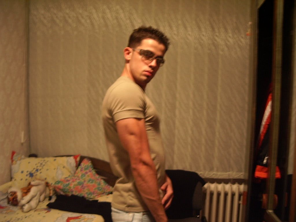 Imagine: brunete masociste cu sbereturi .jpg un barbat sta in camera, cu o privire intensa si parul facial bine definit. In fundal, un radiator vechi si o sculptura de marmura adauga atmosfera erotica. pielea sa asiatica straluceste sub lumina difuzata, iar corpul sau dezvaluit partial prin maneci scurte accentueaza erotismul subtil al scenei pline de pasiune si mister.