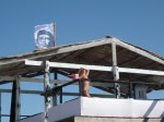 o femeie cu par rosu sta pe o canapea albastra, zambind provocator catre camera. are umerii goi si poarta un decolteu adanc, completandu-si tinuta cu un choker seducator. parul lung ii cade in valuri peste sanii fermi, iar rujul rosu ii accentueaza buzele senzuale. In fundal se vede un cer albastru senin si o palmiera exotica, creand o atmosfera incitanta.