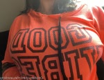 o femeie cu sani mari sta pe o masa langa un camion albastru si zambeste la camera. are par scurt, ochi caprui, buze senzuale si poarta o fusta in carouri. privirea ei este seducatoare, iar lipsa sutienului evidentiaza formele apetisante. o fotografie erotica ce emana senzualitate si farmec feminin.