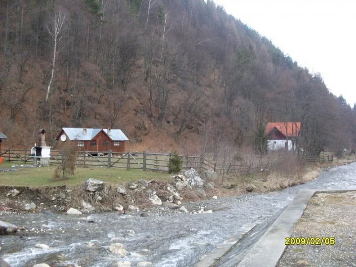 Imagine: fete din cehia .jpg un rau curgand printr-o padure luxurianta de pe versantul unui deal acoperit cu iarba verde, langa un gard din lemn si o mica cladire rosie. peisajul de poveste surprins intr-o fotografie la Scoala dunareana altin divisti. o imagine plina de farmec natural, cu apa limpede, zapada, copaci si natura in toata splendoarea ei.