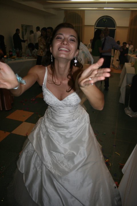 Imagine: sex massage istanbul .jpg o femeie in rochie de mireasa danseaza seducator pe ring, luminata delicat. rochia alba si decolteul ademenitor iti dezvaluie formele voluptoase, in timp ce parul lung si stralucitor ii cad pe umeri. In jur, oameni fericiti se bucura, iar detaliile fine ale bijuteriilor completeaza imaginea pasionala intr-un decor sic cu model patrat atat pe fundal, cat si pe podea.