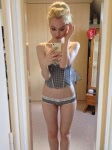 Poza: caritas miercurea ciuc .jpg o femeie intr-un bikini roz sta langa un perete roz, cu o fereastra in spatele ei. parul ei este prins intr-un coc, iar unghii negre subliniaza senzualitatea ei. detaliile precum sanii, decolteul si lenjeria intima completata de piercing-uri subtile sunt evidentiate in aceasta fotografie polaroid. o privire seducatoare catre privitor completeaza imaginea erotica a unei annabel eyres moderne si indraznete.