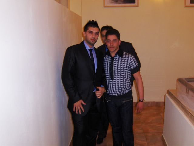 Foto: pitiriazis versicolor .jpg doi barbati stau lipiti unul de celalalt intr-un hol, langa un perete cu fotografii si o scara. unul are capul ras, parul negru, poarta pantaloni negri si o camasa eleganta, accentuata de bijuterii rafinate. privirea lor intensa si postura formala ascund dorinte nedezvatate, creand o atmosfera incarcata de erotism subtil.