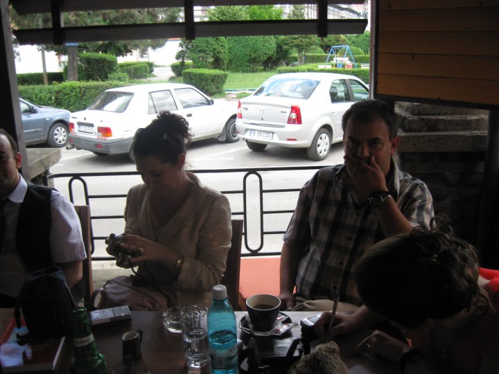Fotografie: Revedere XIIC 2010 021 .jpg un grup de tineri sedusi, asezati in jurul unei mese incarcate cu bauturi si mancare. privirile lor sunt captivate de ecranele telefoanelor, iar atmosfera devine tot mai intima. In fundal, o masina eleganta si un copac adauga farmec scenei. fiecare gest si detaliu imbina rafinamentul cu erotismul subtil, creand o atmosfera plina de tensiune senzuala.