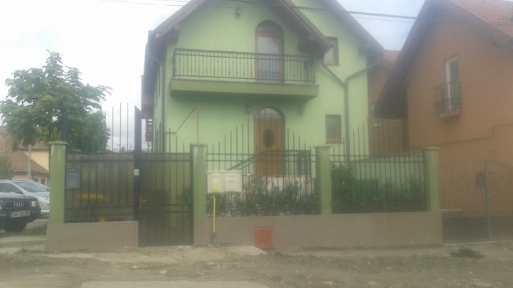 Poza: IMG 20161013 134219 .jpg o casa verde, inconjurata de o garda neagra, se afla intr-un peisaj urban, cu un autoturism si un camion parcat in fata. In jur, se intind cladiri moderne si un pod elegant. soarele straluceste peste turnuri si copaci inalti, iar atmosfera este plina de energie vibranta. o scena perfecta pentru momente intime sub cerul deschis.