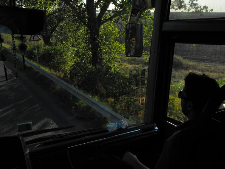 Imagine: chat camera .jpg un barbat conduce un autobuz pe un drum albastru, in lumina noptii, printre copaci si tufisuri dese, intr-un peisaj de o frumusete salbatica. In aer plutesc mister si senzualitate, iar umbrele jucause ale naturii dezvaluie forme sugestive. atmosfera este incarcata de energie erotica subtila, invitand la vise interzise in mijlocul naturii nocturne.