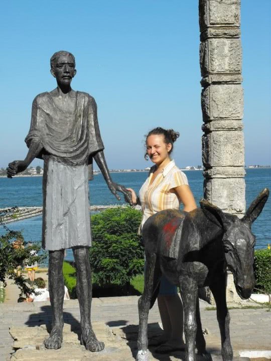 Fotografie: diverse servici .jpg o femeie seducatoare, cu par negru si privire provocatoare, sta alaturi de o statuie de bronz a unui barbat si a unui magar, pe malul marii sub un cer albastru clar. linistea plajei contrasteaza cu erotismul subtil al scenei, unde trupul ei atragator pare gata sa se piarda in valurile oceanului, intr-o atmosfera fierbinte si incarcata de dorinta.