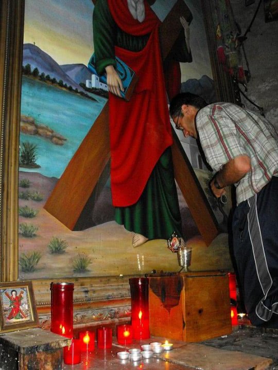 Imagine: ghei maturi .jpg un barbat aprinde lumanari in fata unui tablou cu iisus, pe un perete impodobit cu cruci. In jur, atmosfera e incarcata de arta transgresiva si stil art nouveau, intr-un decor exterior plin de natura. o tanara seducatoare poarta o fusta in carouri, iar detaliile realiste si cenzura subtila amplifica tensiunea erotica a scenei pline de mister si pasiune.