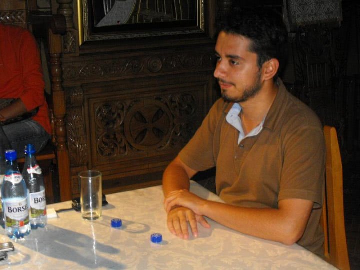 Foto: matrimoniale s1 .jpg un barbat seducator sta relaxat la masa, cu bratele incrucisate, purtand o camasa si o barba atragatoare. In fata lui, o sticla de apa si un pahar, iar in jur se simte atmosfera intima. parul sau negru si privirea intensa adauga un farmec misterios scenei pline de erotism subtil.