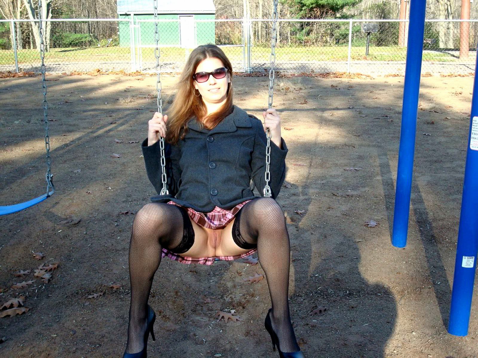 Imagine: upskirt peeks videos .jpg o femeie intr-o fusta si ciorapi stand pe o leagan intr-un parc, cu un gard in fundal, iluzie optica, imbracata complet. o fotografie captivanta ce surprinde eleganta si senzualitatea unei tinere moderne. detaliile subtile precum zambetul ei fermecator si privirea misterioasa aduc un plus de farmec imaginii.