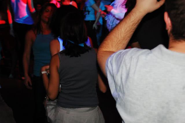 Poza: bunicute paroase .jpg un grup de oameni dansand in lumina vibranta a petrecerii, cu miscari kitsch si senzuale. In prim-plan, o femeie cu par negru, purtand o bluza fara maneci, invaluita intr-o atmosfera blurred ce intensifica senzatia de intimitate si mister. lumini colorate si fundal estompat completeaza scena plina de energie si erotism subtil.