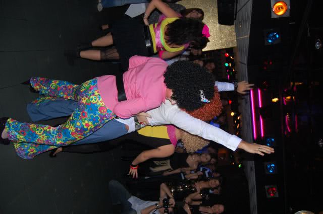 Fotografie: vidio gay .jpg un grup de oameni se aduna in jurul scenei, iar o persoana zboara cu skateboard-ul deasupra lor, capturata intr-un miscare kitsch si senzuala. parul lung si negru al unei fete cu rochie florala contrasteaza cu tinutele colorate ale baietilor si fetelor din pantaloni si tricouri roz. energia vibranta si privirile pline de dorinta creeaza o atmosfera incarcata de erotism subtil.