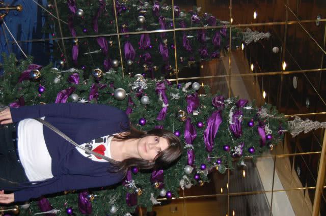 Fotografie: tarfe tari .jpg o femeie seducatoare sta in fata unui brad de craciun decorat cu ornamente mov si argintii, invaluita intr-o atmosfera magica. parul sau lung si ondulat cade senzual peste umeri, iar privirea misterioasa atrage ca un magnet. In jur, globuri sclipitoare si un ghirlanda stralucitoare completeaza scena pasionala si plina de farmec festiv.